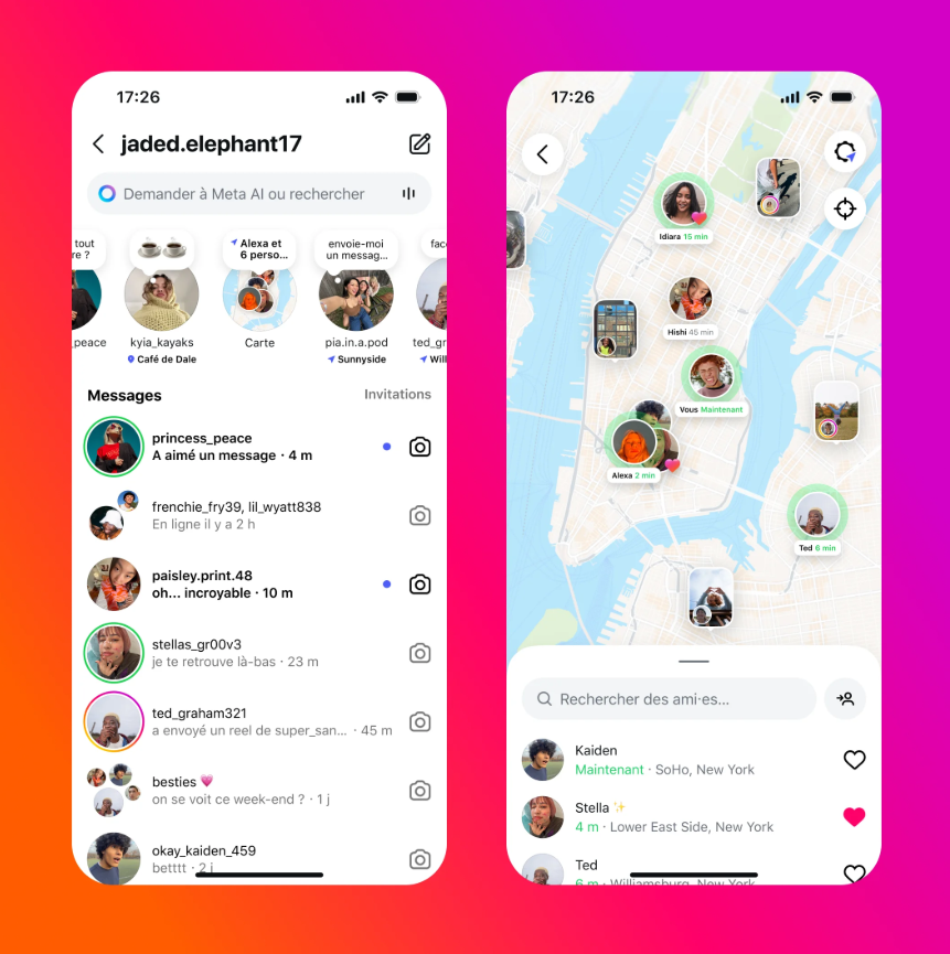 Autre nouveauté marquante, la carte des amis. Cette fonctionnalité permet de visualiser la position de ses contacts sur une carte interactive. Inspirée des usages déjà présents sur d’autres plateformes sociales, elle encourage la rencontre et la spontanéité en facilitant la localisation de ses proches. Bien que pratique, elle soulève aussi des questions de confidentialité et il sera intéressant de suivre comment Instagram encadrera son utilisation.